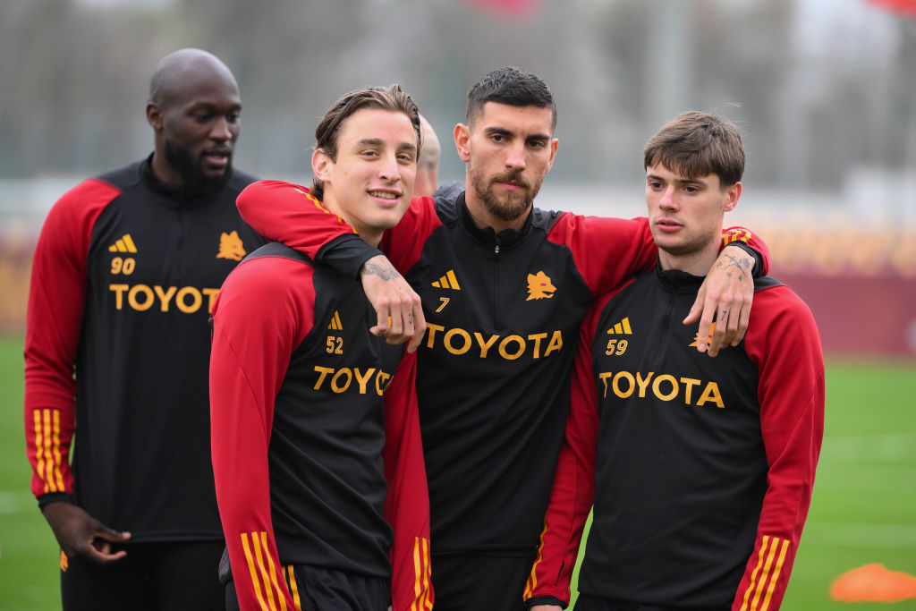 Sarà una Roma in emergenza, soprattutto in difesa: infatti per il suo esordio sulla panchina giallorossa De Rossi dovrà fare a meno di calciatori importanti come Mancini e Cristante, tutti e due sqalificati dopo la gara di San Siro contro il Milan. Di seguito alcuni dei migliori scatti della seduta odierna.