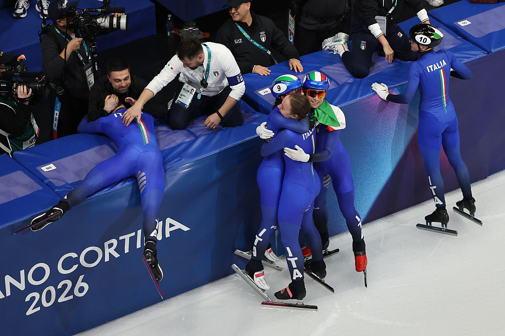 Il filo lo leva a Pietro Sighel, Thomas Nadalini ed Elisa Confortola, protagonisti della staffetta mista dello short track vinta dall'Italia