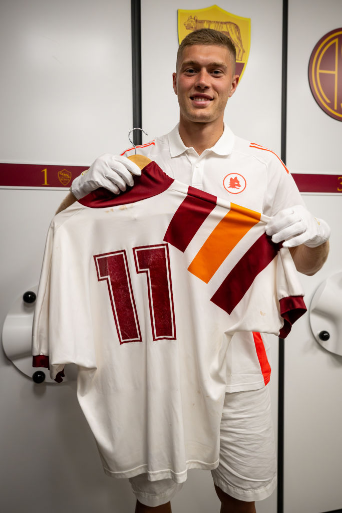 Artem Dovbyk è ufficialmente un nuovo calciatore della Roma. Il centravanti ucraino arriva dal Girona ed è pronto a mettersi a disposizione di Daniele De Rossi. E proprio nel suo primo giorno in giallorosso, Dovbyk ha fatto visita al centro sportivo di Trigoria, incontrando l'allenatore della Roma e scattando qualche foto con l'home kit della prossima stagione.