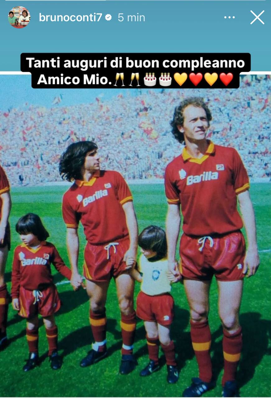 Bruno Conti festeggia Paulo Roberto Falcao. In occasione del compleanno del "Divino", la bandiera giallorossa ha voluto celebrare l'ex compagno con una storia sul proprio profilo Instagram: "Tanti auguri di buon compleanno amico mio", il messaggio di Bruno sui social.