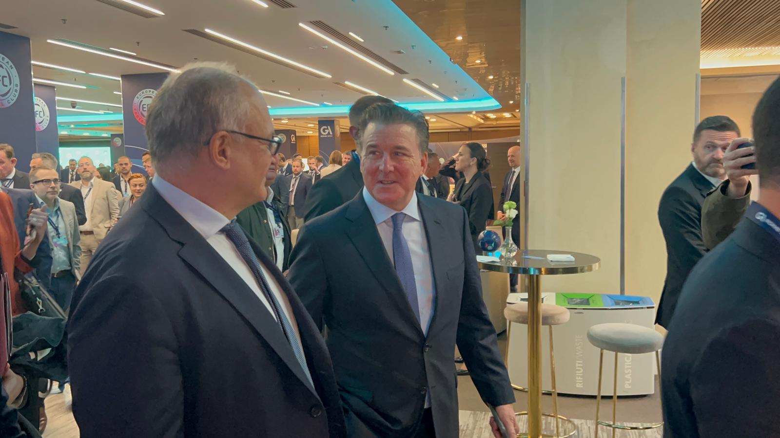 Quella di oggi è senza dubbio una giornata molto importante per la Roma. Nonostante l'assenza di partite da qui ai prossimi nove giorni, con la sosta per le nazionali che ha sottratto temporaneamente diversi giocatori a Gasperini e la prossima partita in programma sabato 18 contro l'Inter. Il presidente giallorosso Dan Friedkin è infatti a Roma, per la prima volta da agosto, e dopo l'incontro avvenuto ieri a Trigoria con Gasperini e la squadra, a margine dell'assemblea EFC (ex ECA) oggi ha avuto modo di incontrare Roberto Gualtieri, il Sindaco di Roma. Qui le immagini dell'incontro.