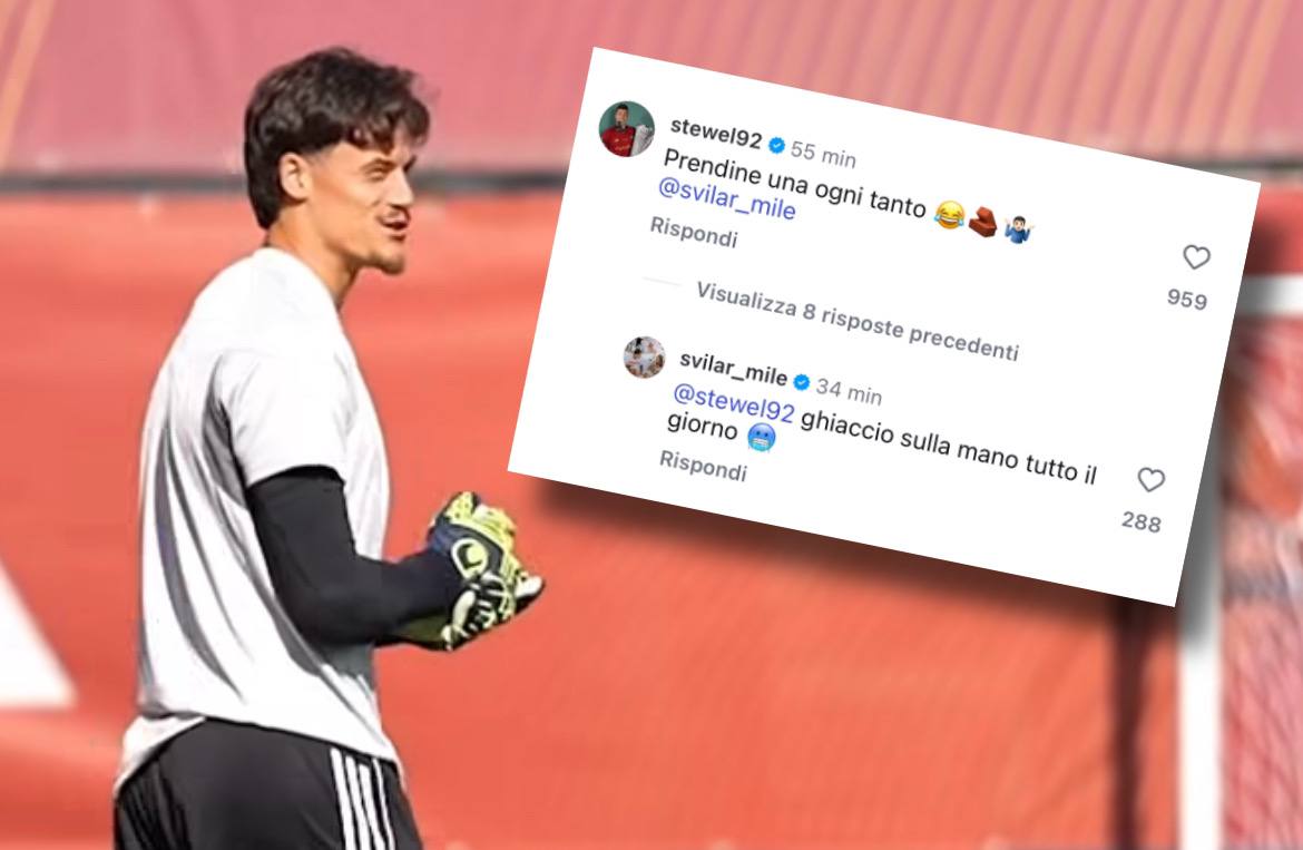 Il siparietto social tra i due calciatori giallorossi dopo la sfida in allenamento e le parate del portiere al numero 92