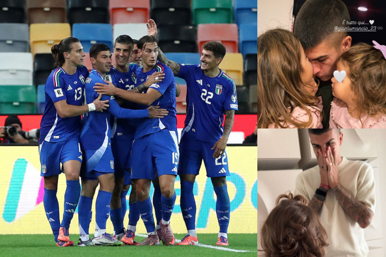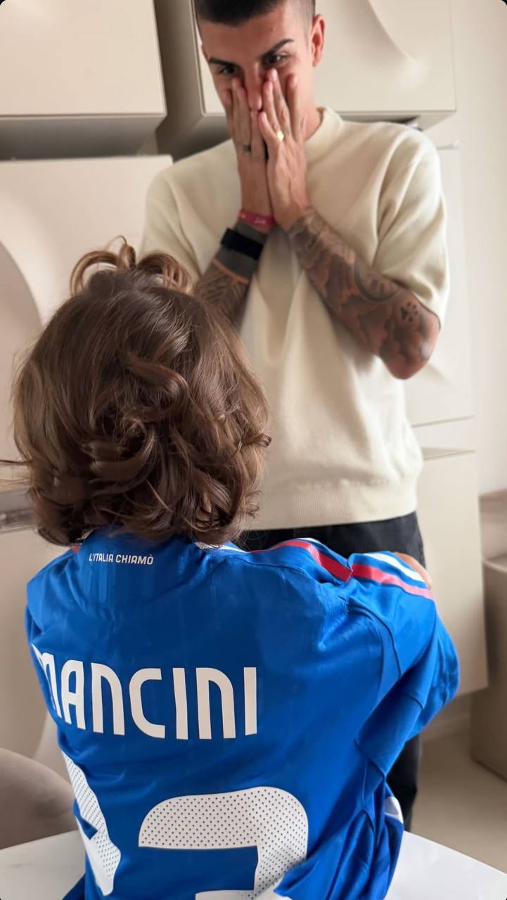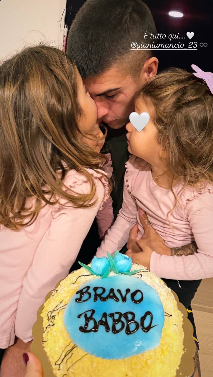 Attraverso una storia condivisa su Instagram da Elisa Baggiani, moglie di Gianluca Mancini, è stato mostrato il momento a sorpresa in cui le figlie della coppia hanno dato la torta con scritto "Bravo babbo" al centrale giallorosso, per celebrare la prima rete in Nazionale arrivata ieri sera contro Israele.