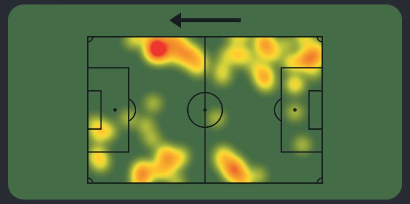 La heatmap di Wesley contro il Sassuolo (SOFASCORE)