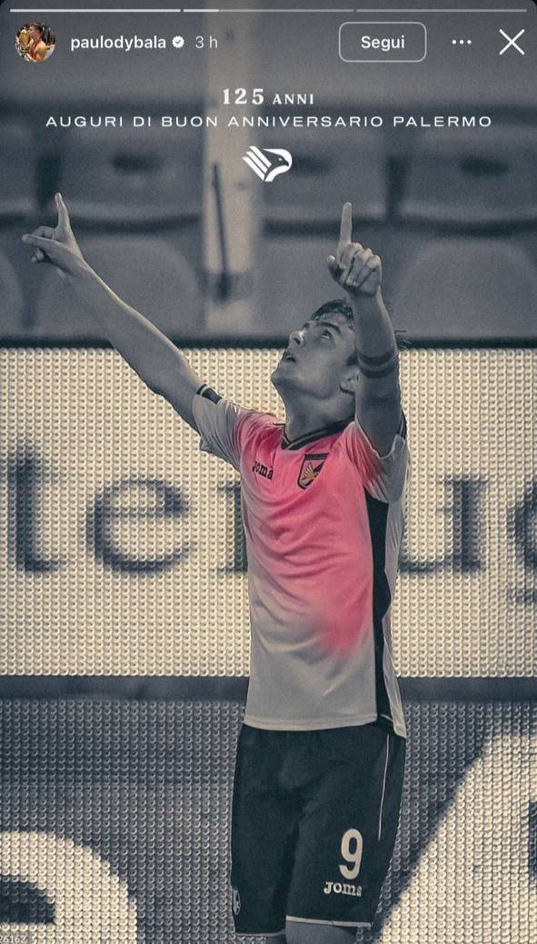 Nel calcio moderno dei giocatori di passaggio da un club all'altro, Paulo Dybala ha dimostrato, nel corso della sua carriera, di legarsi profondamente alle squadre di cui veste la maglia. Lo ha dimostrato più volte qua a Roma, e lo ha fatto anche nei suoi club precedenti, tra Instituto, Palermo e Juventus. Le due formazioni italiane, per una curiosa coincidenza, compiono oggi, nello stesso giorno, il loro anniversario di nascita: 125 anni per il Palermo, 128 per la Juve.