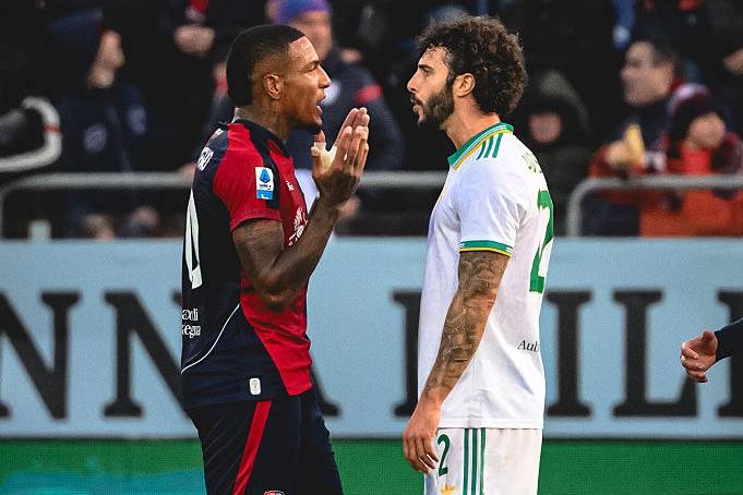 Durante Cagliari-Roma, vergognose frasi rivolte dal giocatore dei sardi al difensore giallorosso in seguito a un diverbio: entrambi sono stati ammoniti da Zufferli