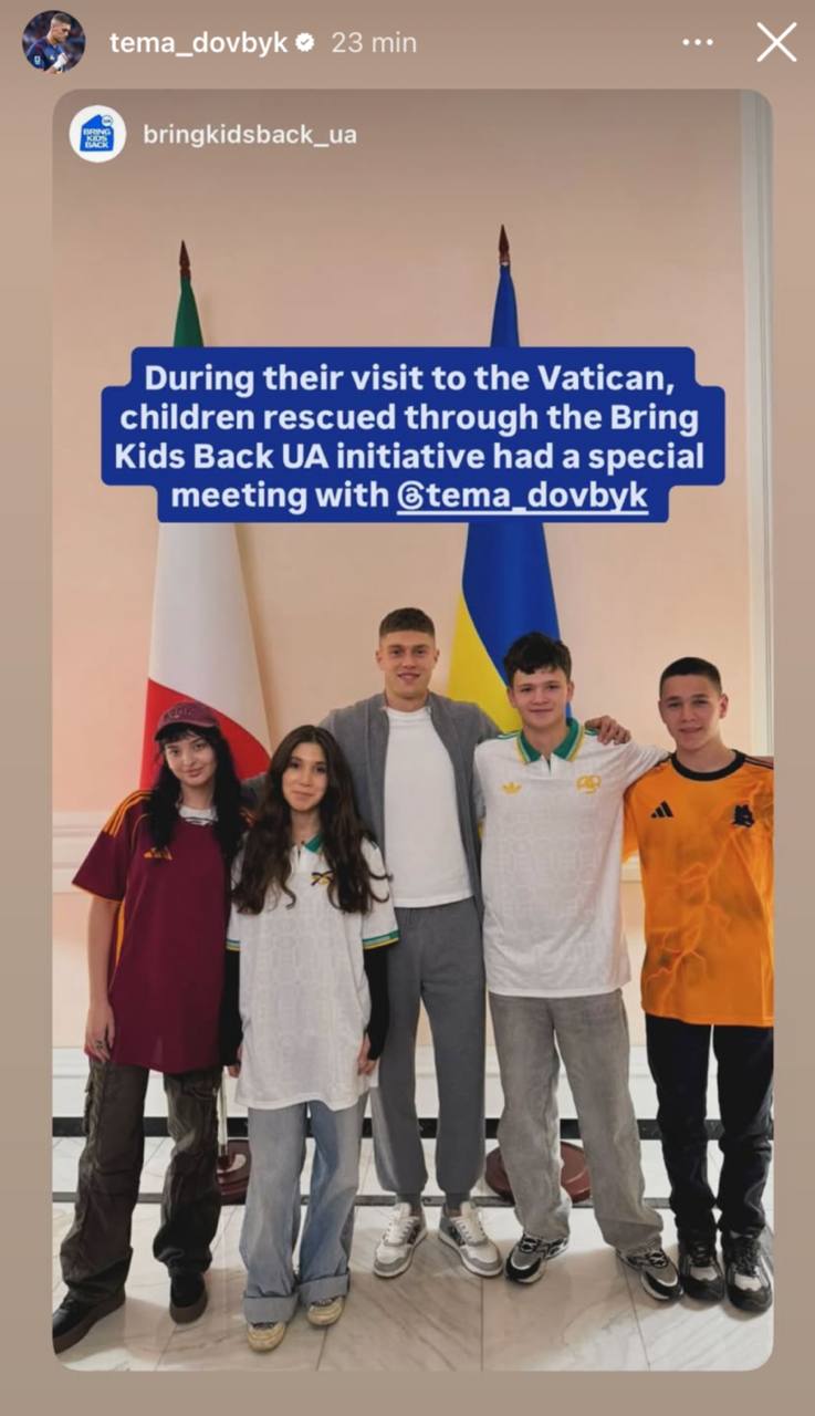 Anche la stessa associazione ha condiviso sui propri profili social lo scatto, con un Dovbyk sorridente, accompagnato da un messaggio: "Durante la loro visita in Vaticano, i bambini salvati attraverso l'iniziativa 'Bring Kids Back UA' hanno avuto un incontro speciale con Artem Dovbyk".