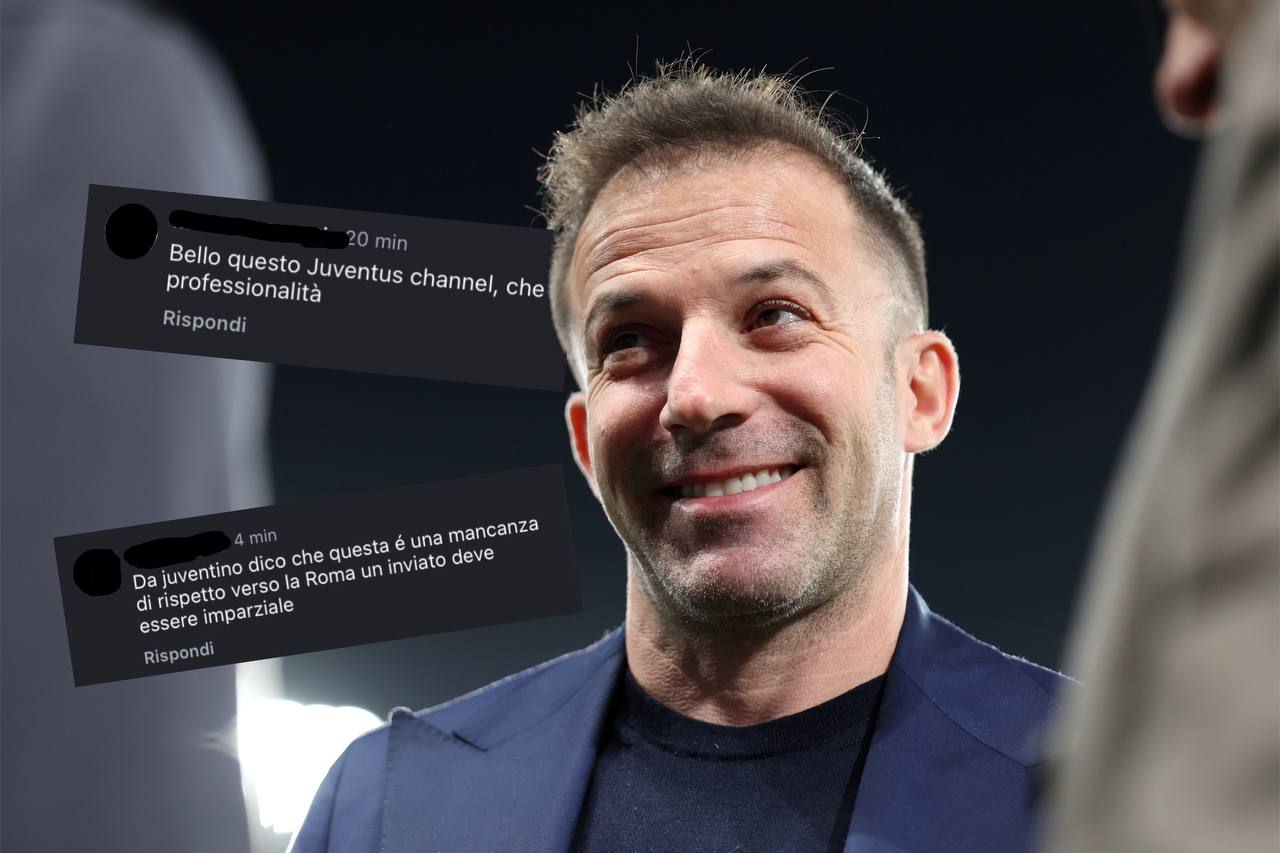No, nessuno ci vede male; no, non è neanche Juve Channel, è proprio Sky Sport: l'inviato in questione è Alessandro Del Piero, storico capitano bianconero che il club ha voluto omaggiare con una maglietta in suo onore indossata da tutti i giocatori juventini nel riscaldamento e proprio dall'ex calciatore. Una bella iniziativa che, per una serie di coincidenze lavorative, ha reso il prepartita non troppo gradito ai tifosi della Roma.