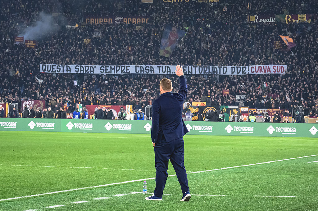 Da giovane debuttante, da protagonista, da Capitano, da allenatore. Ora, però, da avversario. Per la prima volta Daniele De Rossi torna allo Stadio Olimpico, casa sua, ma in un'altra veste: da allenatore del Genoa. Un momento emozionante e da ricordare. Per celebrare il ritorno a casa, la Curva Sud ha dedicato uno striscione alla propria bandiera.