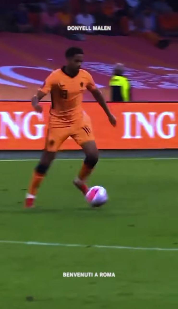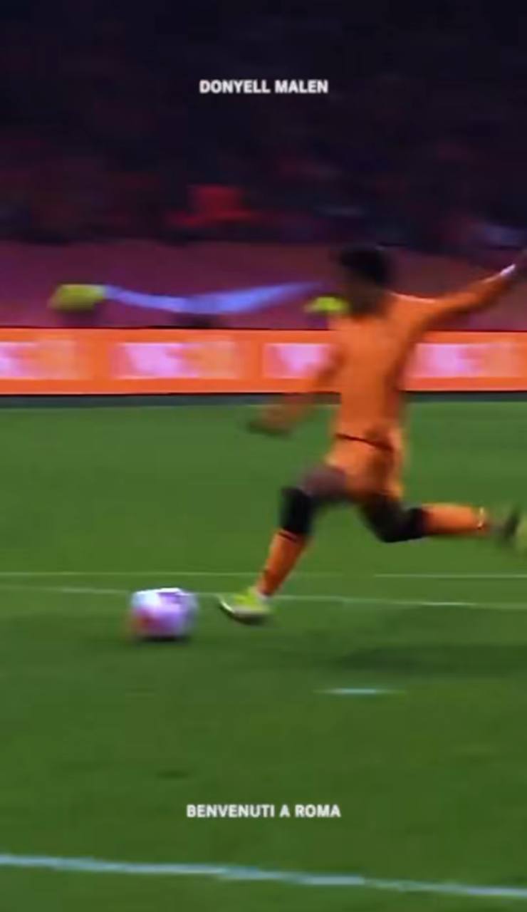 "Benvenuti a Roma", si legge in basso. Mentre scorre una clip non casuale: si tratta infatti di un assist servito da Devyne a Donyell durante una partita tra Olanda e Turchia terminata 6-1 nel 2021.