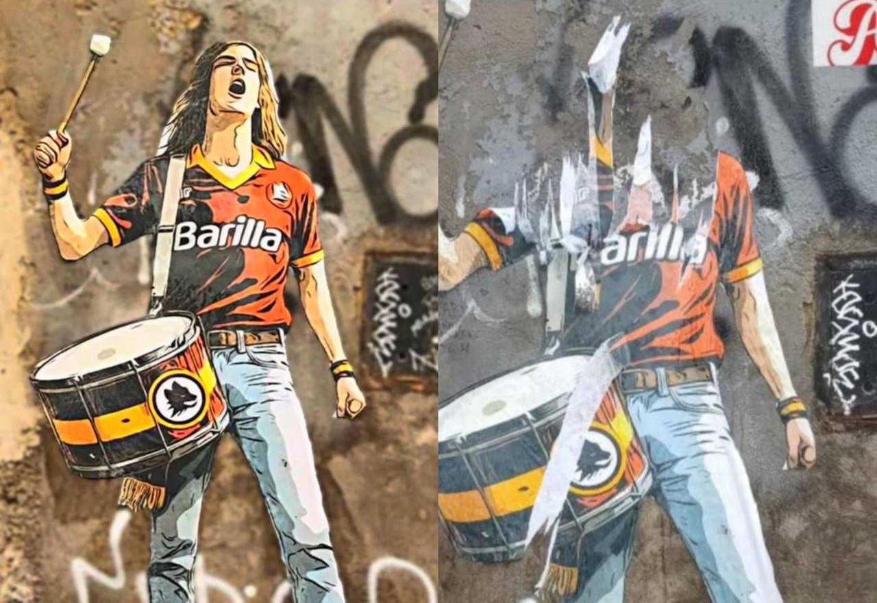 Neanche il tempo di renderlo pubblico. Poche ore dopo averlo affisso per le vie della Capitale, il murale per Antonio De Falchi realizzato da Drugi in vista di Roma-Milan è stato deturpato. Un gesto terribile nei confronti di un'opera realizzata per omaggiare un sostenitore parte della storia del club.