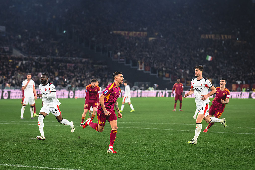 Suona paradossale che nel doppio confronto col Milan la Roma abbia segnato un solo gol e preso un solo punto, a fronte di tre tempi e mezzo dominati su quattro, di una serie lunghissime di occasioni di gol, di cinque punti di expected-goal. E il Milan, dopo aver passato tre tempi e mezzo a difendere sotto la traversa, abbia preso quattro punti con due gol e oggi continui ad inseguire l’Inter in solitaria, conservando proprio quattro punti (guarda caso) sulla Roma, ora terza a pari merito col Napoli a 43, preso a schiaffi ieri dalla Juventus, che ora è quinta un punto sotto, mentre il Como è a 40, chiudendo così la fila delle pretendenti ai primi quattro posti del campionato. Quella di ieri sera è stata una partita per molti versi simile a quella dell’andata, primo tempo monocolore (anzi bicolore, giallo e rosso), secondo più equilibrato, col Milan immeritatamente in vantaggio (ieri sera stacco di De Winter su cross di Modric) e poi un rigore per tornare almeno in parità, all’andata sbagliò Dybala, ieri sera ha colto l’angolino Pellegrini. E dopo il pareggio alla Roma è mancata la qualità e la forza soprattutto nei rincalzi: mentre infatti Allegri ha potuto inserire gente di esperienza come Fulkrug, Pulisic e Loftus-Cheek, Gasperini si è dovuto “accontentare” di Pisilli (al posto di Koné che purtroppo si è stirato, ne avrà per qualche settimana), di Robinio Vaz e di Venturino, oltre per fortuna che di Pellegrini che ha calciato con freddezza il rigore resistendo psicologicamente ai giochini poco sportivi di Maignan, uno specialista nel parare i rigori anche per i trucchetti di quart’ordine che utilizza per innervosire gli avversari (ieri almeno Colombo l’ha ammonito).