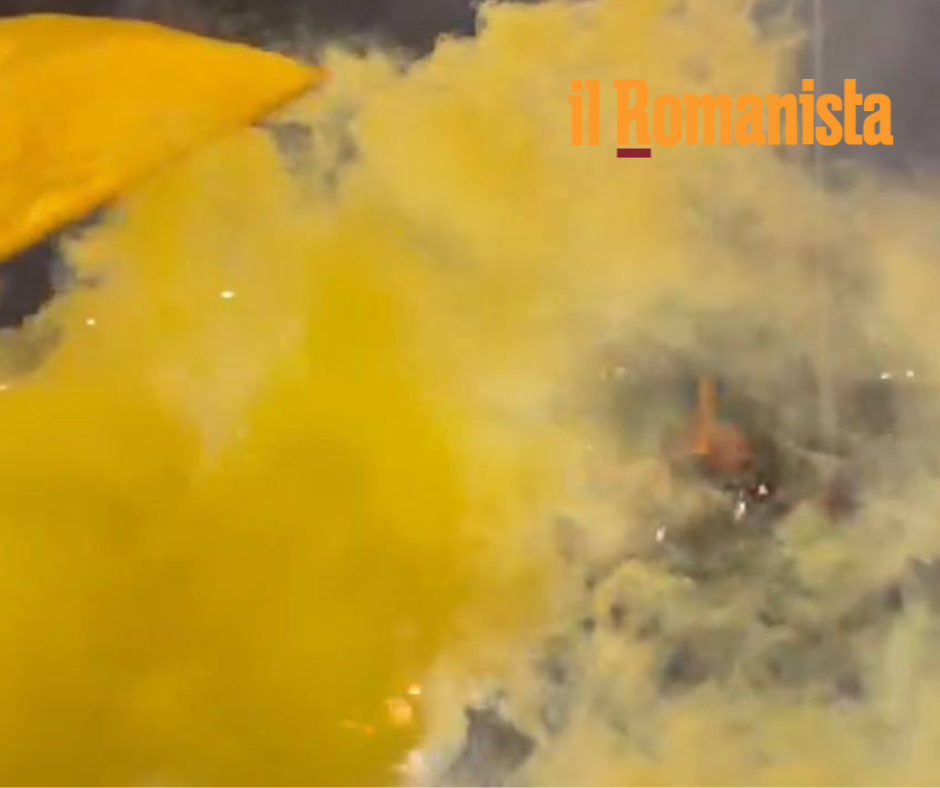L'atmosfera si fa incadescente in zona Olimpico. A ormai poche ore dalla gara di ritorno degli ottavi di finale di Europa League contro il Bologna, i tifosi Romanisti hanno accolto l'arrivo della squadra allo stadio con cori, fumogeni giallorossi e bandiere.