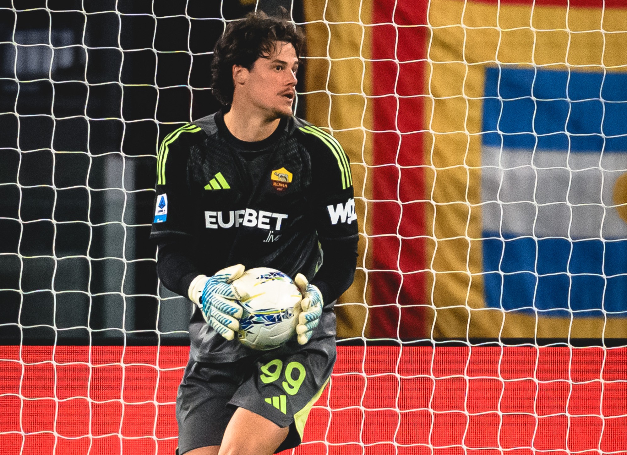 I giallorossi vincono 3-0 allo Stadio Olimpico anche grazie al super-riflesso del portiere, che nel primo tempo toglie al 10 avversario la gioia del gol