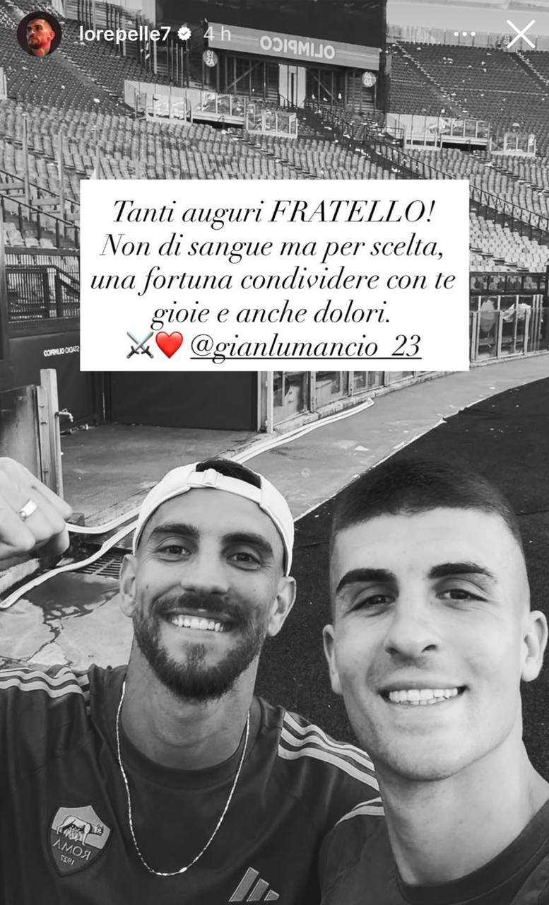 In una giornata importante per Gianluca Mancini, non poteva che arrivare il messaggio social di un amico, oltre che compagno di squadra, come Lorenzo Pellegrini. Il centrocampista giallorosso ha infatti augurato un buon compleanno al difensore centrale con una foto sulle storie Instagram e un bel messaggio: "Tanti auguri fratello! Non di sangue, ma per scelta.