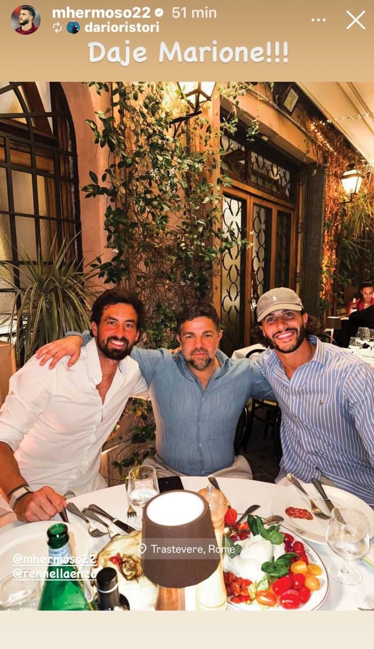 Attimi di relax per Mario Hermoso. Il difensore spagnolo, reduce dal gol segnato contro l'Atalanta (il terzo della sua stagione), si è infatti recato ieri sera a Trastevere per cenare e trascorrere un momento di pace in compagnia dei suoi agenti.