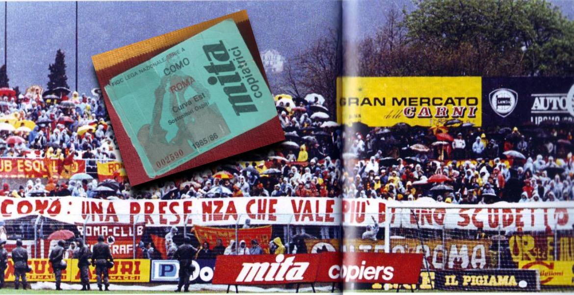 Son 40 anni oggi. C’è un’immagine di quel giorno, un tifoso della Roma che canta sotto la pioggia a Como: «Siamo i tifosi della Roma, siamo del Commando Ultrà, forza Roma alé alé …» Se l’Aida era stata la colonna sonora di Roma-Pisa, questa è stata la colonna sonora di quelle che forse ancora oggi sono le 13 partite più entusiasmanti di sempre della Roma. La Roma di Eriksson, che su 26 punti a disposizione, nelle 13 gare, ne prese 8 alla Juve che a dicembre si era laureata campione del mondo e in campionato le aveva vinte tutte. Una rincorsa mai vista, di stadio in stadio, vincendo a Milano col Milan, a Torino col Toro, battendo 3-1 (più due rigori sbagliati) l’Inter con una squadra piena di ragazzini, vincendo 3-0 e per sempre sulla Juventus con uno stadio colorato, per la prima volta nella storia degli stadi, tutto dai ragazzi del Commando Ultrà. («Siamo i tifosi della Roma, siamo del Commando Ultrà…»).