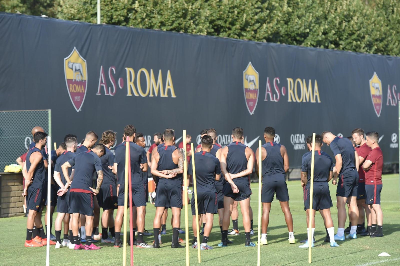 I giallorossi si sono allenati in un'unica seduta pomeridiana al centro sportivo. Primo allenamento con il gruppo per i nuovi acquisti, vacanze finite per il Sette