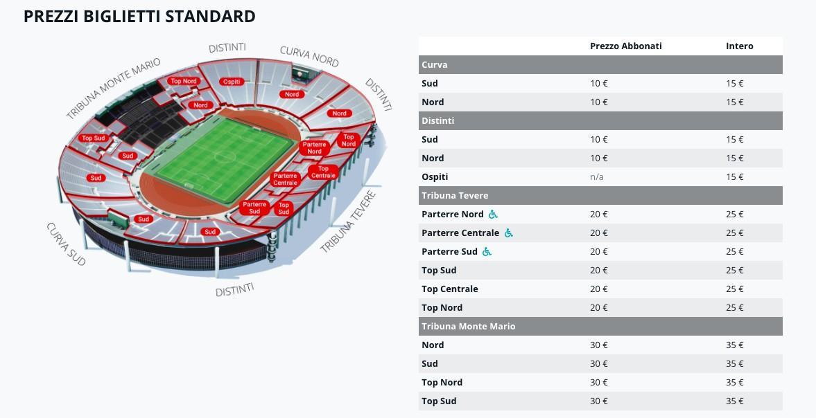 I settori Curva Nord, Distinti Nord saranno disponibili solo in caso di esaurimento dei settori Curva Sud e Distinti Sud.