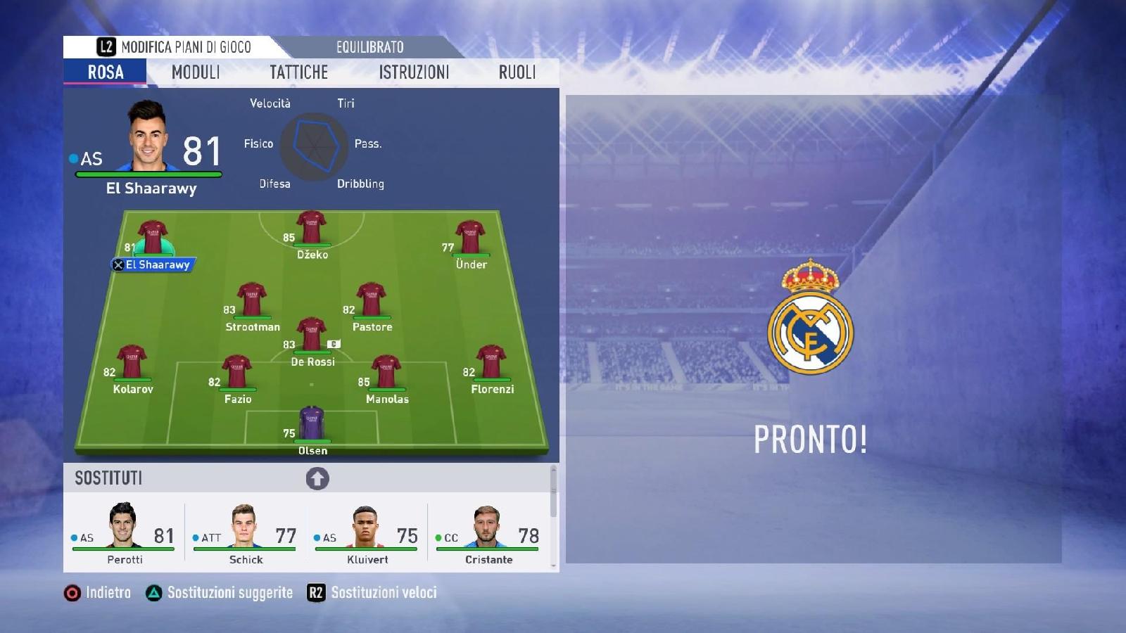 La Roma avrà una valutazione di 4 stelle e mezzo: DIFESA 81, CENTROCAMPO 81, ATTACCO 81.