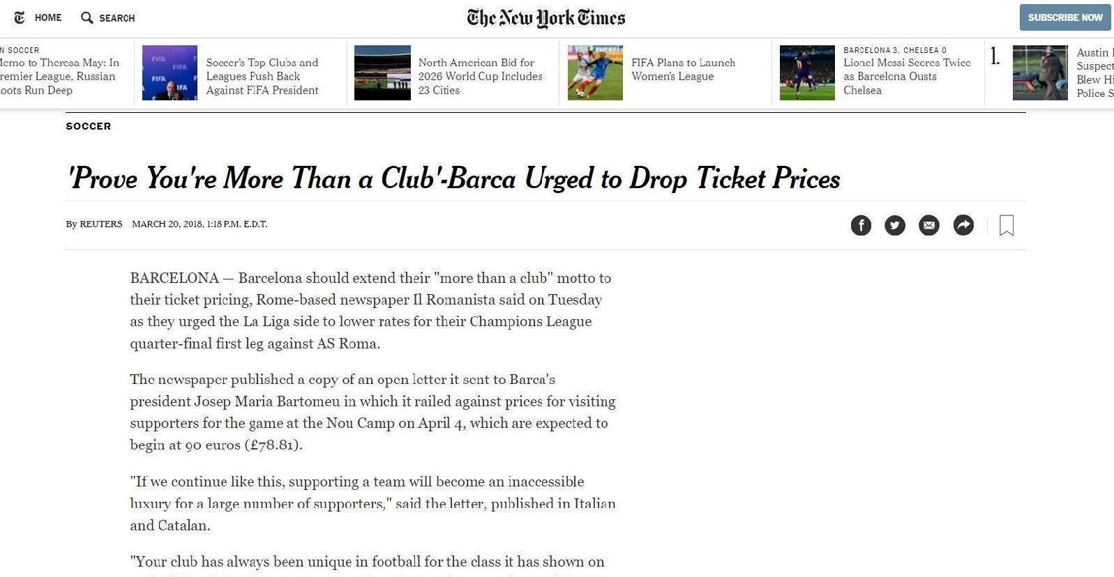 Il 20 marzo 2018 il quotidiano ha pubblicato, in catalano, una lettera diretta al Barcellona chiedendo di abbassare il prezzo dei biglietti nel settore ospiti in occasione della sfida di Champions League Barcellona-Roma, fissato a 89 euro. Il 3 aprile il presidente blaugrana Josep Maria Bartomeu ha risposto al giornale spiegando le ragioni della sua politica, ringraziando il quotidiano per la sensibilità dimostrata sull'argomento. Il "carteggio" ha fatto il giro del mondo, finendo su tutti i più importanti siti e quotidiani spagnoli (As e Marca in particolare) e persino sul New York Times.