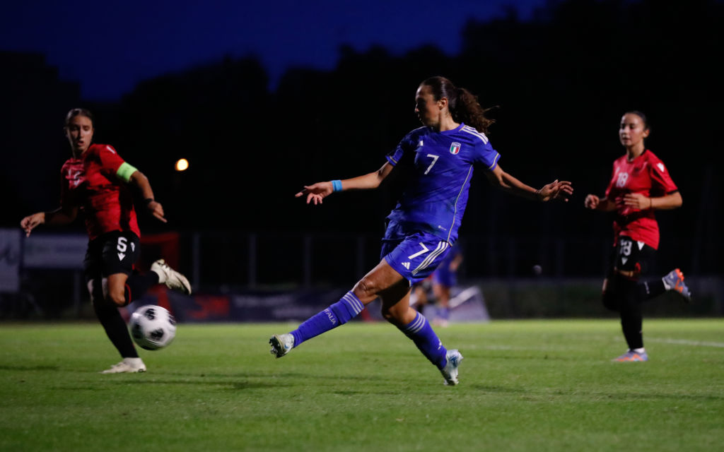 La calciatrice giallorossa si è resa protagonista nel 3-1 delle azzurrine contro il Marocco, portando a quattro le reti nella competizione