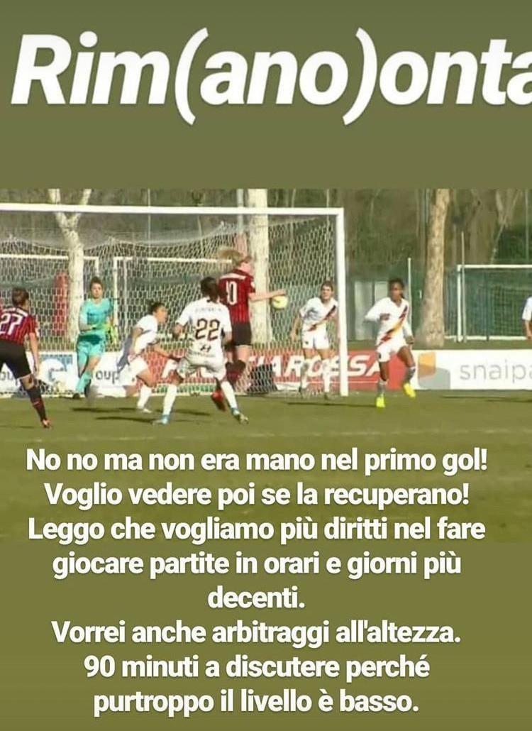 Bartoli furiosa con l'arbitro di Milan-Roma Femminile. Il capitano delle giallorosse si sfoga su Instagram per la rimonta subita (da 2 gol di vantaggio negli ultimi 20 minuti) postando una storia sul proprio profilo ufficiale. Sull'immagine del tocco di mano della rossonera Thorvaldsdottir in occasione del gol che ha riaperto la partita al 70' scrive: "No, non era mano nel primo gol! Voglio vedere poi se la recuperano! Leggo che vogliamo più diritti per far giocare partite in orari e giorni più decenti. Vorrei anche arbitraggi all'altezza. 90 minuti a discutere perché purtroppo il livello è basso".