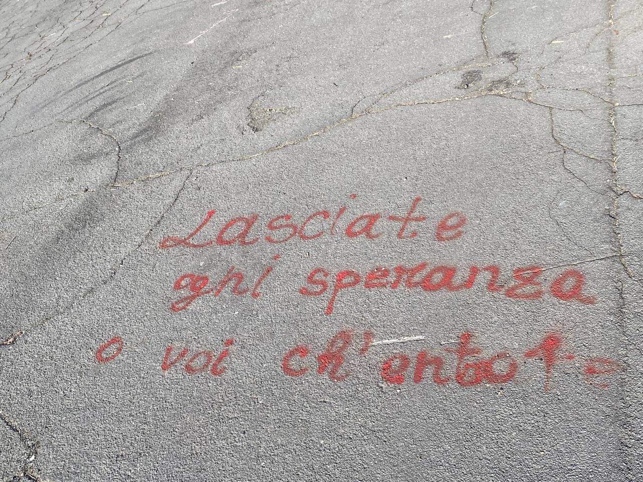 Questa è la storia di una mattina d’ottobre, con Roma scaldata dal sole, di una passeggiata trascorsa con lo sguardo puntato a terra, a contare i rifiuti, evitando materassi abbandonati e altri che lasciano intuire degli usi poco convenzionali, incrociando chi, in questo luogo, tenta di portare avanti una quotidianità tutta sua. Gli occhi si soffermano sulla recinzione consumata dal tempo, nella sua accezione cronologica e meteorologica, sul graffito a terra: «Lasciate ogni speranza o voi ch’entrate». Se Dante andava nella città dolente, nell’eterno dolore e tra la perduta gente, noi siamo tornati là dove la Roma voleva costruire la sua nuova casa. Dove oggi, a distanza di anni, tutto è rimasto fermo, congelato, decadente e, se tra la selva oscura delle piante infestanti ci si può ancora muovere, si fatica a intravedere una possibile scalata verso il Paradiso, verso il recupero di quest’area ormai lasciata al suo destino. Questa è la storia di Tor di Valle. Sedotta e abbandonata.