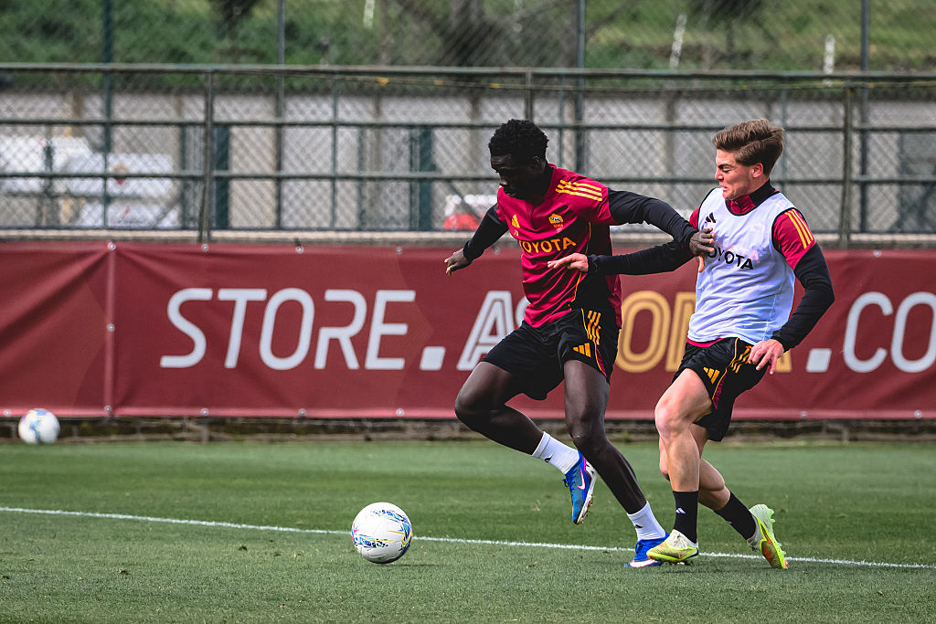Matias Soulé prosegue col lavoro in gruppo, insieme ai compagni rimasti nella Capitale. Da Angeliño a Pellegrini, passando per El Shaarawy e Robinio Vaz: la concentrazione è tanta. Il tecnico ha deciso di aggregare alcuni Primavera al gruppo, tra cui Seck, Litti, Marchetti e Zinni. Ora tre giorni di riposo, martedì mattina la ripresa.
