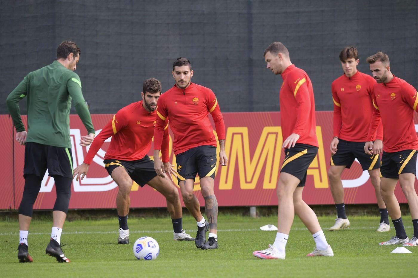 A Trigoriala Roma prosegue l'allenamento in vista della gara contro il Benevento, in programma domenica alle 20:45: out Smalling (distorsione al ginocchio) e Diawara (positivo al Covid). Allenamento individuale per Karsdorp