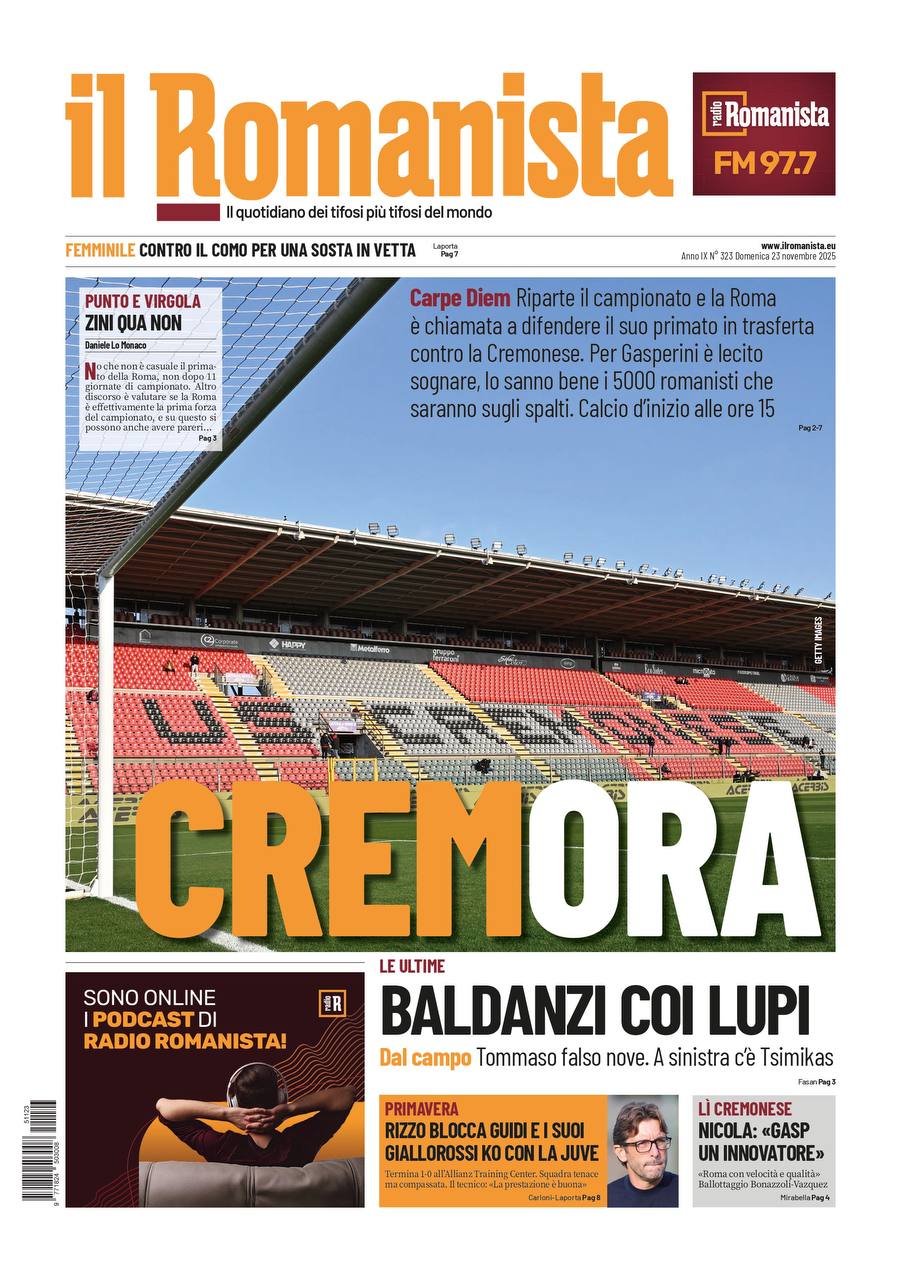 AS RomaLIVE - Cremonese-Roma, le formazioni ufficiali: Baldanzi e Ziolkowski titolari23/11/2025 - 14:08 -