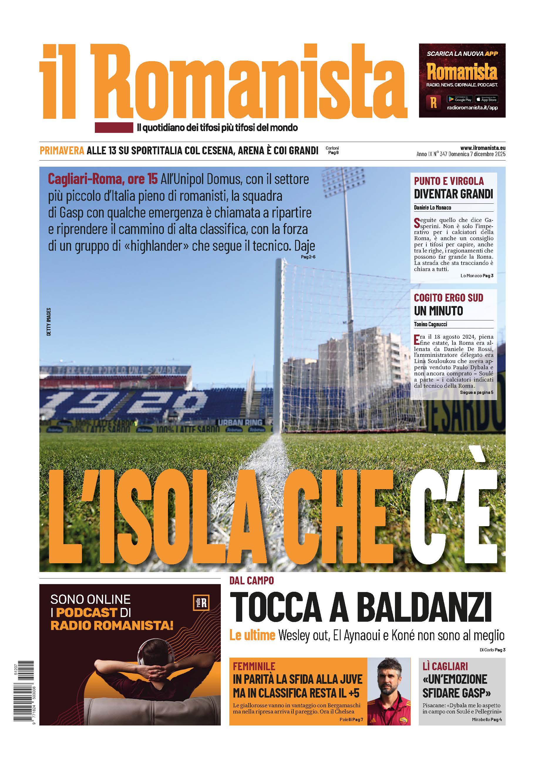 AS RomaLIVE - Cagliari-Roma, le formazioni ufficiali: c'è Baldanzi dal 1'07/12/2025 - 13:47 -