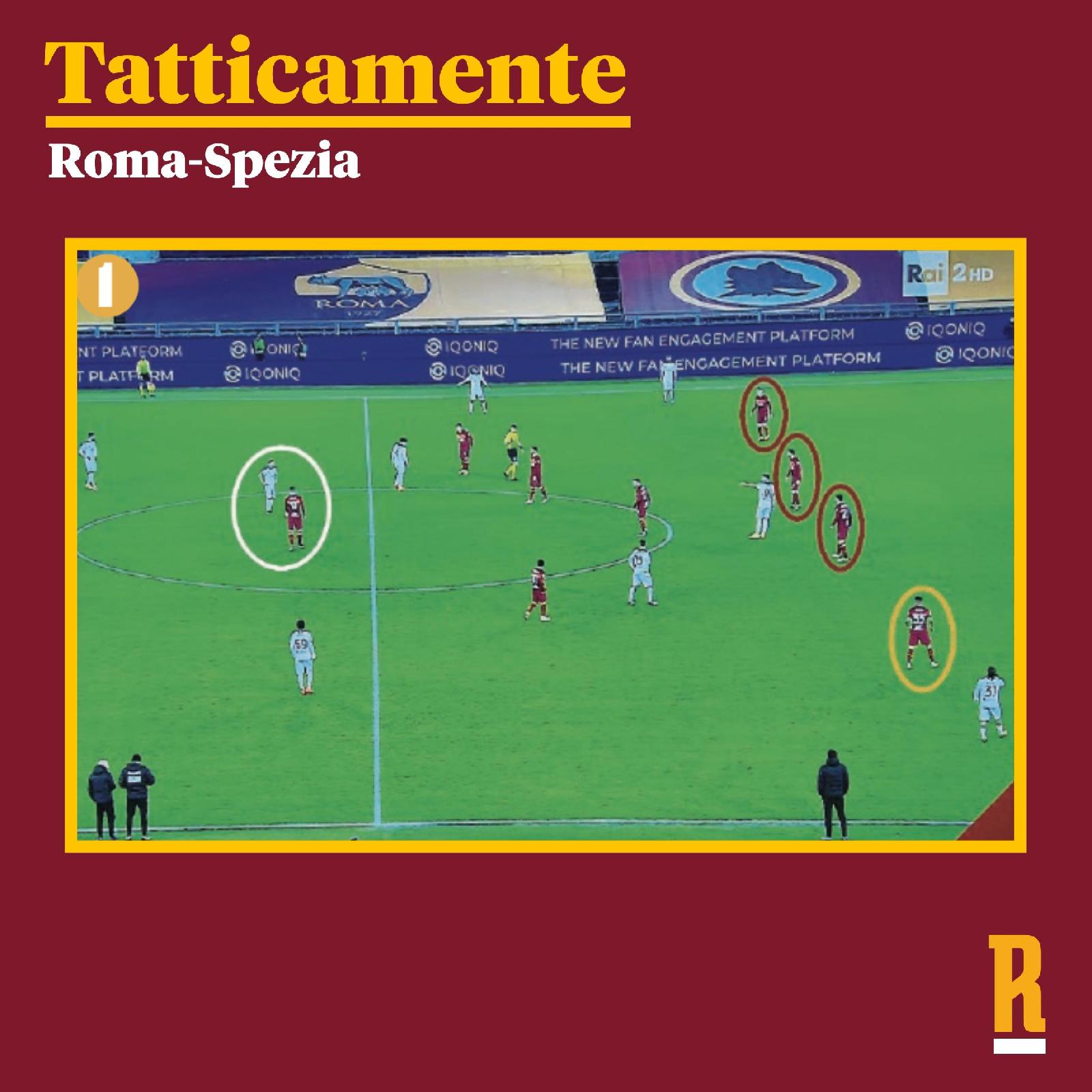 L'analisi tattica di Roma-Spezia: in quattro fotogrammi l'episodio dell'uscita dello spagnolo causata da alcuni errori difensivi
