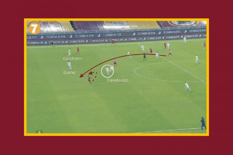 TatticaMente FOTO - Il rischio di certi sbilanciamenti alla ricerca del pallone Nel corso della ripresa di Roma-Genoa, una pressione in avanti sbagliata da parte dei giallorossi ha portato Zappacosta al tiro da dentro l'area di rigore 09/03/2021 - 20:05 VAI ALL'ARTICOLO