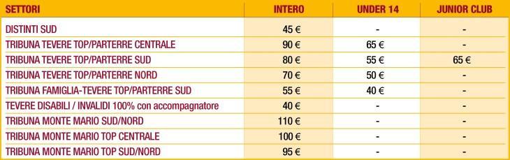 - I settori Curva Sud Centrale e Curva Sud Laterale sono esauriti in abbonamento.
