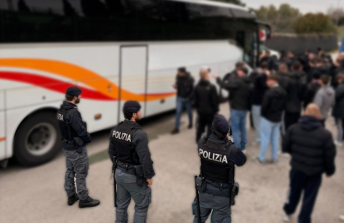 Un primo pullman di tifoseria non a rischio è stato intercettato alle ore 11:00 circa e, dopo i controlli di rito, indirizzato verso l’albergo di riferimento.